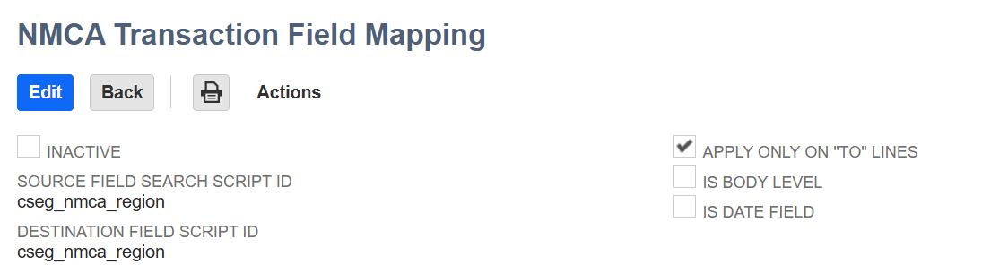 In the above example, the line-level custom segment field with the script ID "cseg_nmca_region" will be mapped from the AP transaction to the destination lines of the Advanced ICJE.